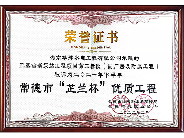 常德市“芷蘭杯”優(yōu)質(zhì)工程(副廠房及附屬工程)