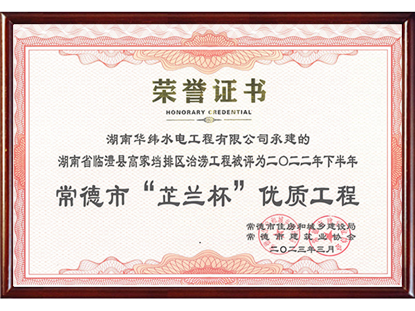 2022下半年芷蘭杯優(yōu)質(zhì)工程(高家垱項(xiàng)目)